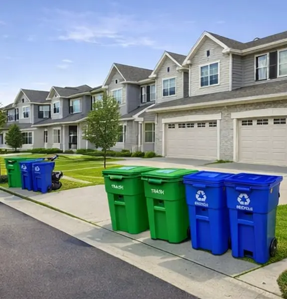 Day-before bin placement and pickup-day return built for managed properties using standard rolling bins.